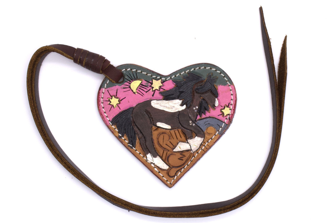 Leder Anhänger mit Pferdemotiv in Herzform, Schlüsselanhänger