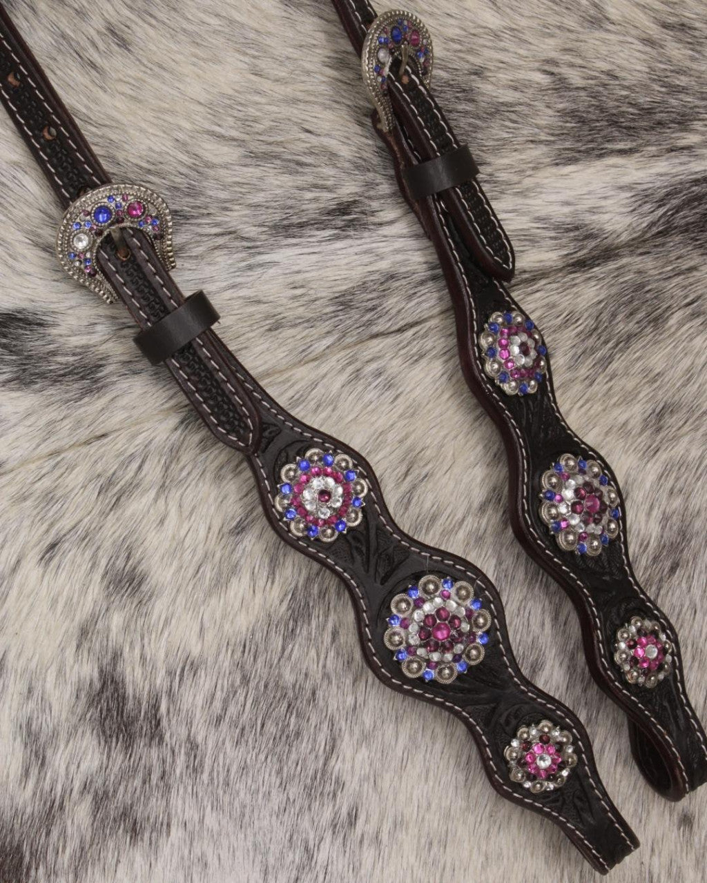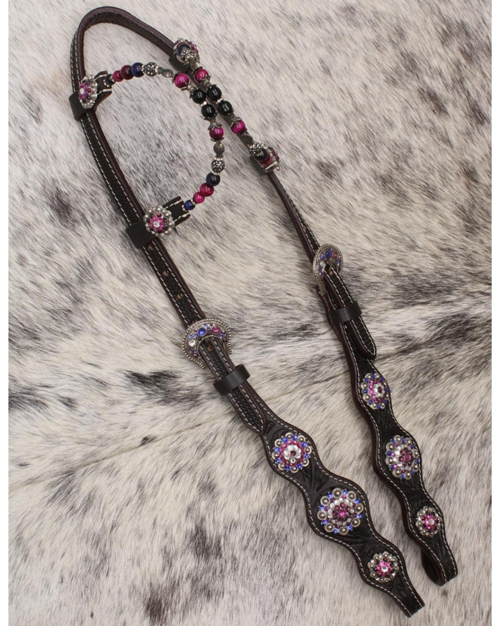 Zweiohr Show Westerntrense dunkelbraun/lila mit Perlen-Earloop